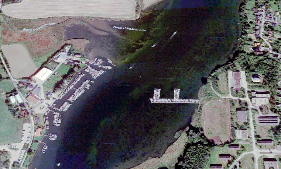 Wir haben die geplante Steganlage maßstabsgetreu! in dieses Bild eingearbeitet um einen Eindruck von der Länge im Verhältnis zur Schleibreite zu erhalten. Das Ergebnis ist erschreckend. Im Plan zum B-Plan, war die Anlage nicht eingezeichnet, nur in der Textfassung erwähnt. Klick aufs Bild und wunder dich, wie so etwas mehrheitlich beschlossen werden kann.