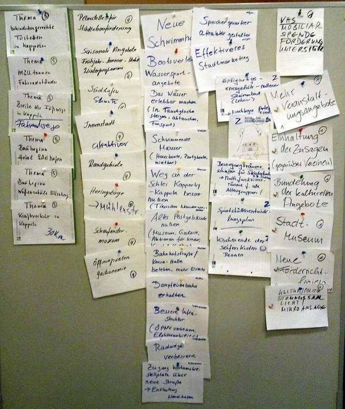 Die Ergebnisse wurden in Stichpunkten an eine Pinnwand geheftet, es wird auch ein ausführliches Protokoll für alle Teilnehmer geben.Es gab sehr viele Anregungen und Ideen, die es jetzt auch umzusetzen gilt.