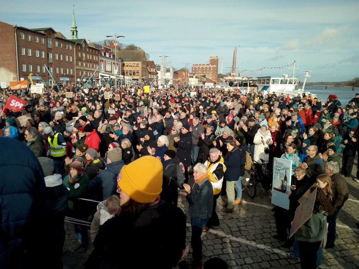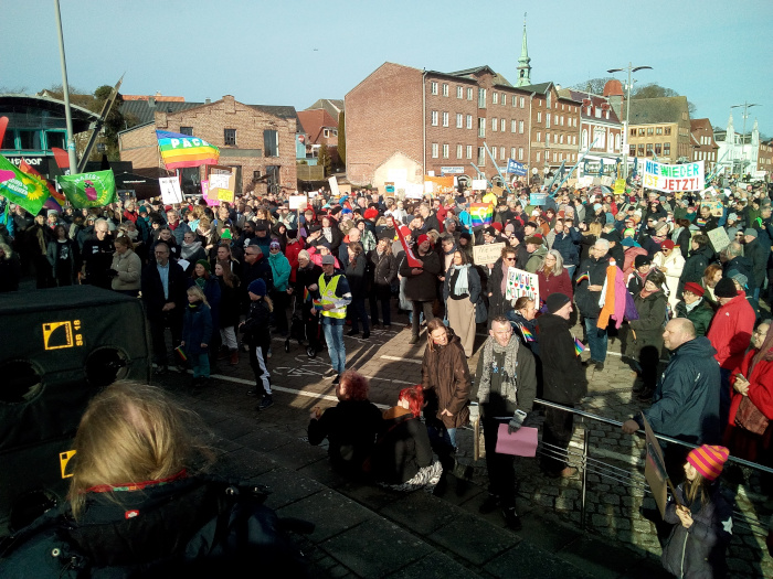 Heute haben auch in Kappeln über 1500 Menschen im Nordhafen ein deutliches Zeichen gegen den aufkommenden Rchtsradikalismus gesetzt.